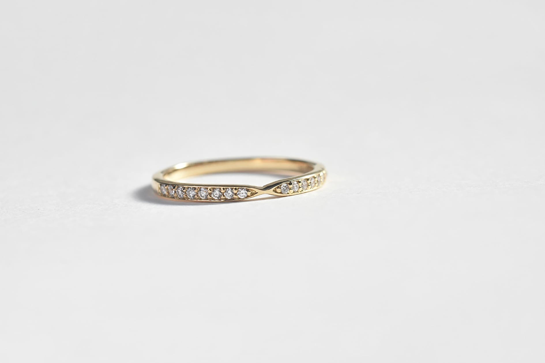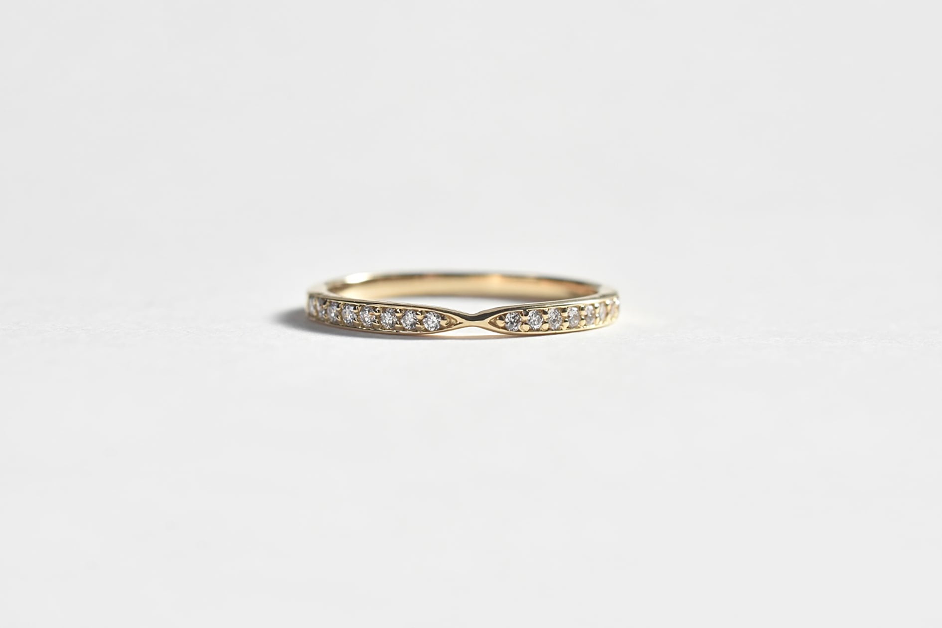 1.3mmと細身のシルエットにハイクラスのメレダイヤモンドをハーフラインまで敷き詰めました。