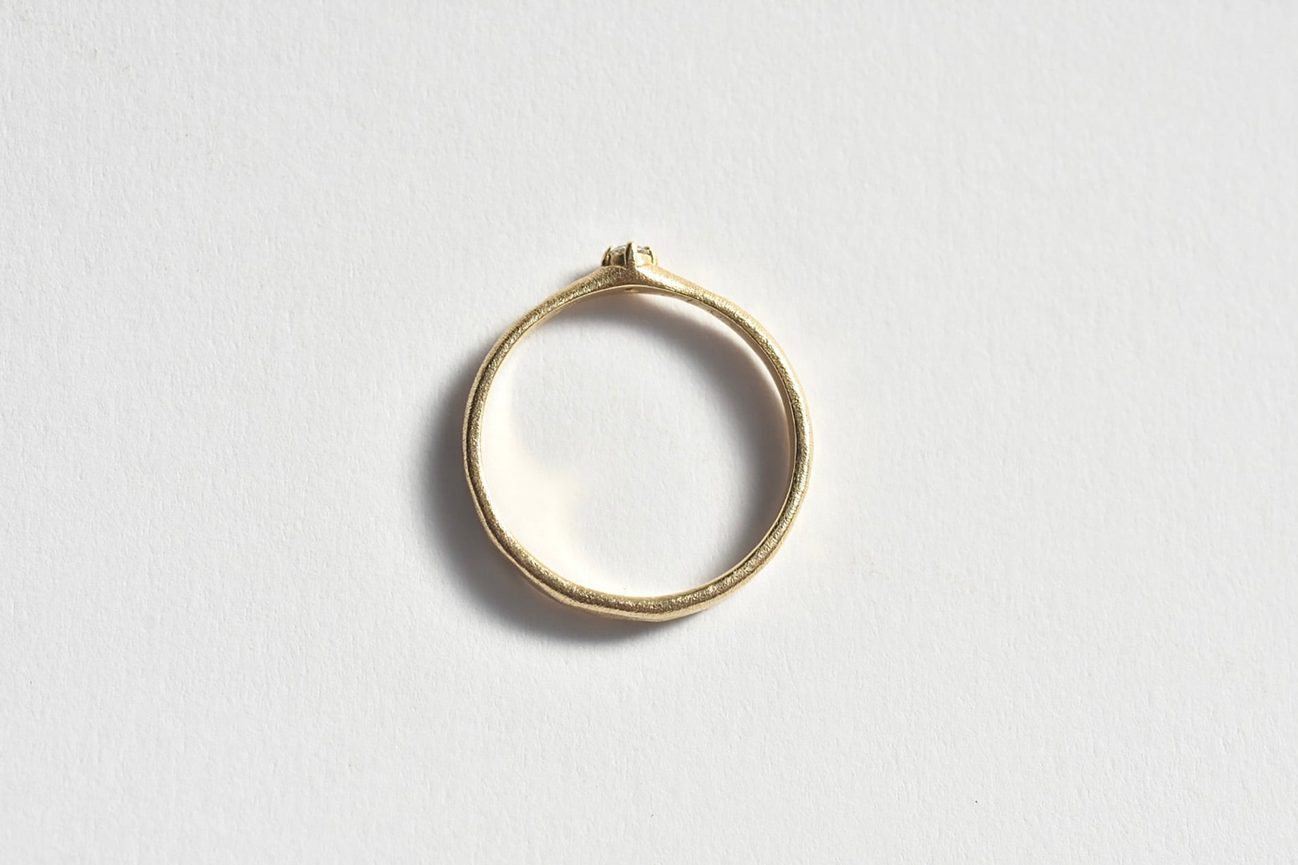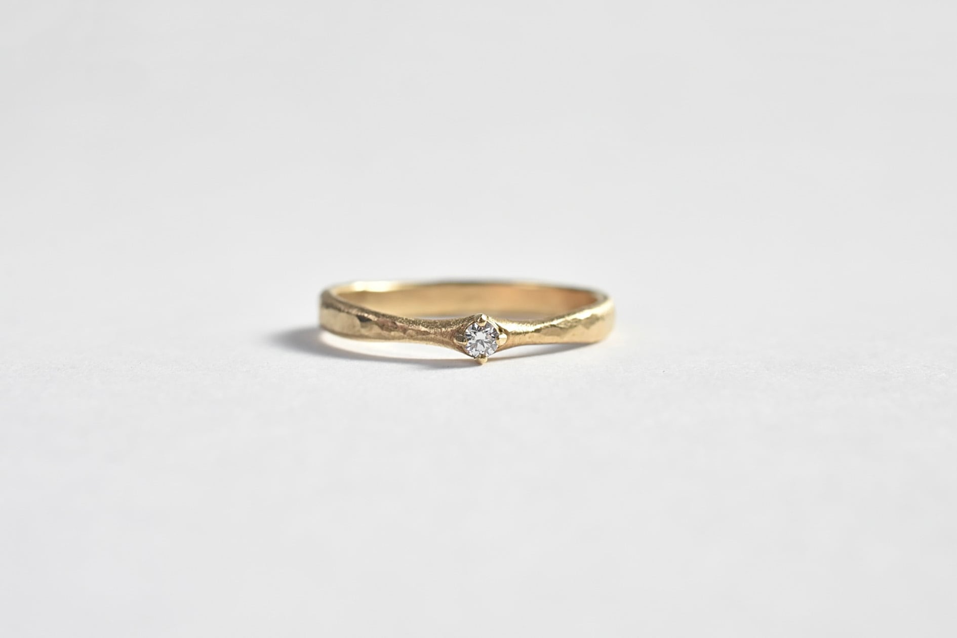 やすり目を残しつつマットで仕上げたクラフト感漂うダイヤモンドリング。