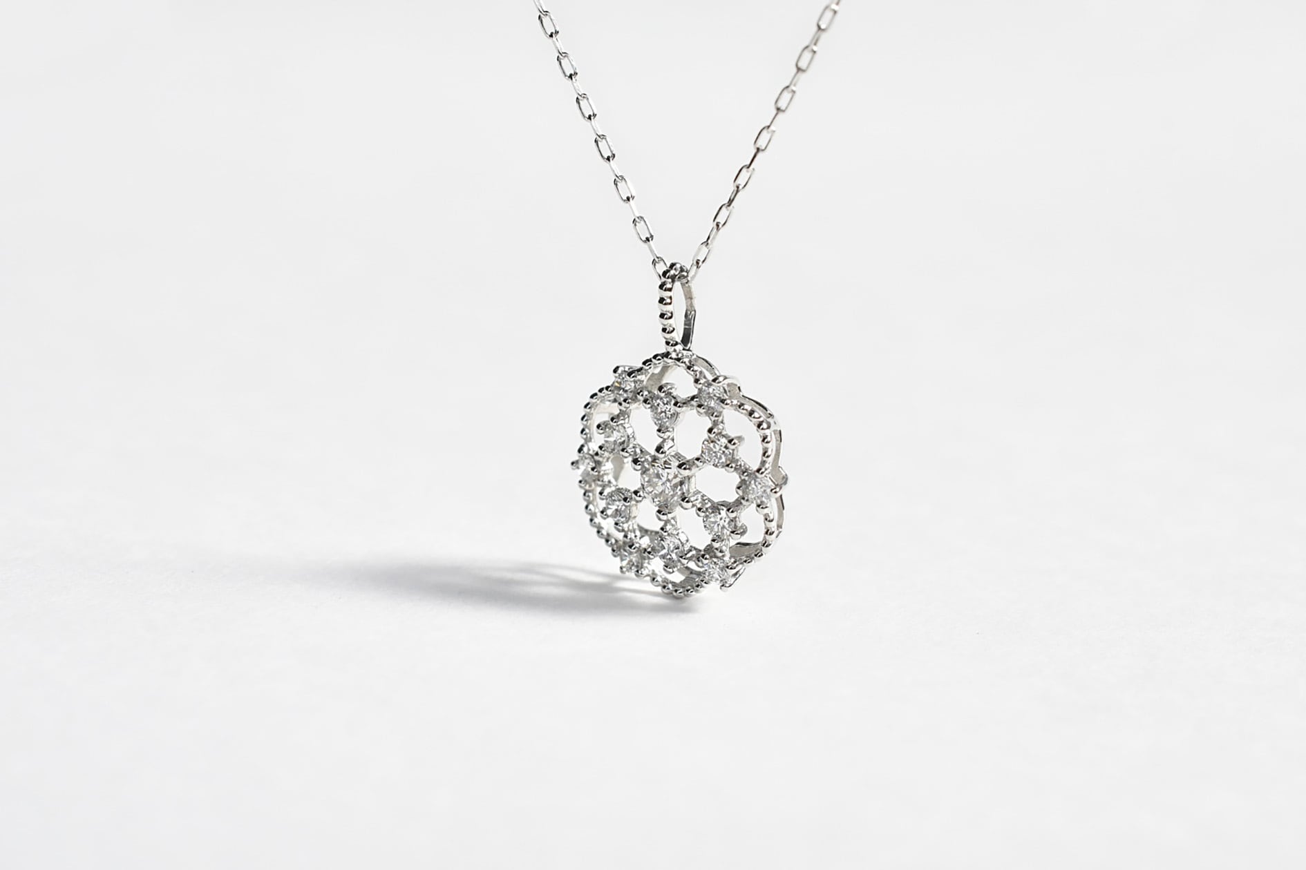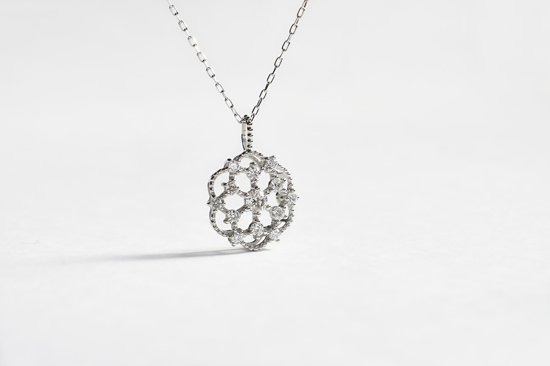 total 0.22ct のダイヤモンドが規則的に並んだネックレス。