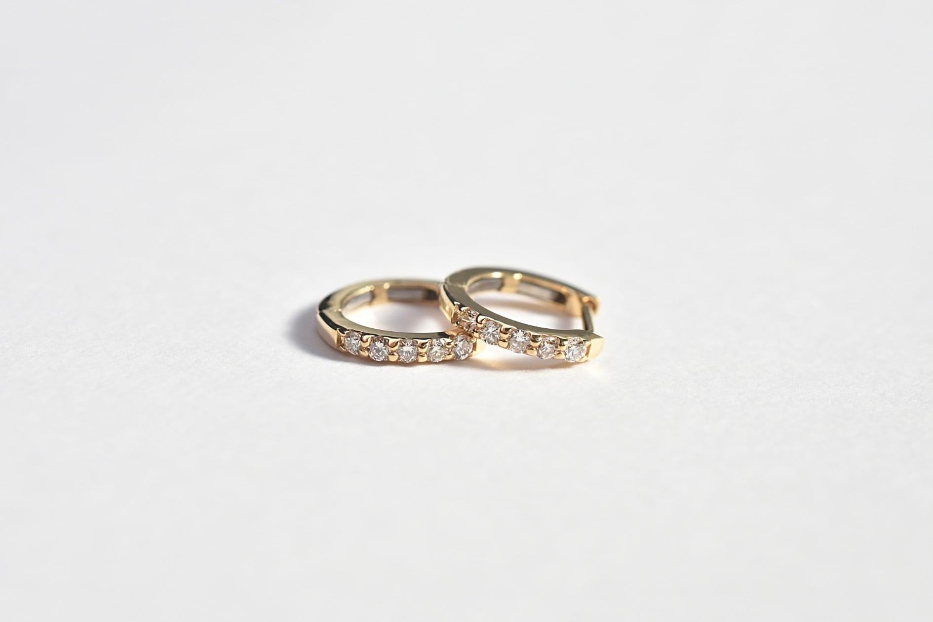 ダイヤモンド フープピアスS ( バネ式 ) 0.05ct × 2 / K18YG