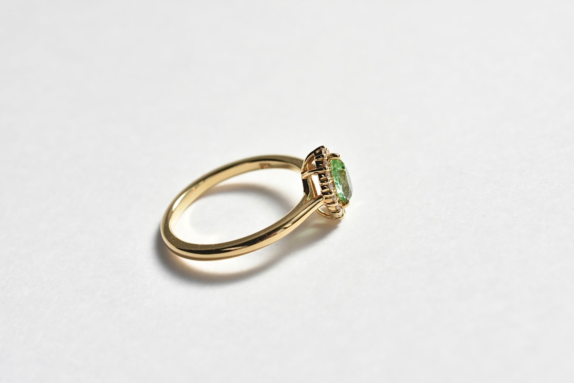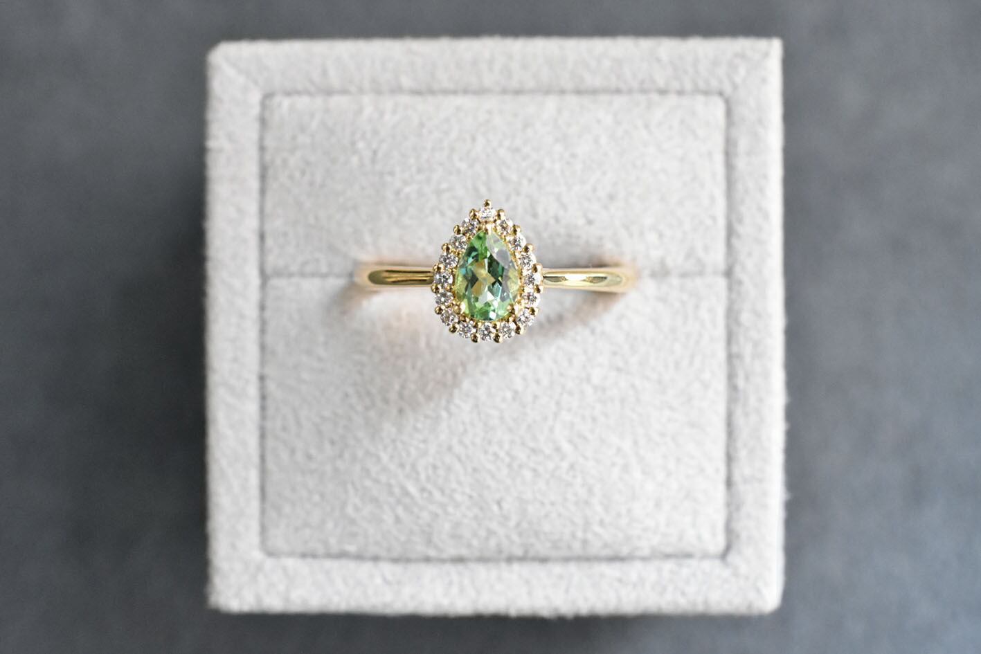 取り巻いたダイヤモンドが美しさをさらに際立たせます。